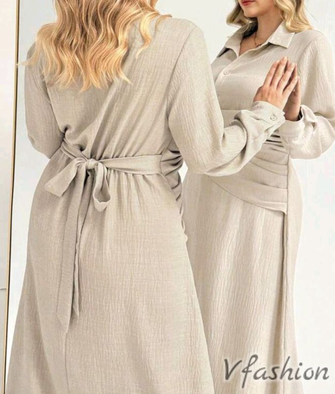 Много актуална, стилна рокля с интересна кройка. Роклята се завръзва на гърба.