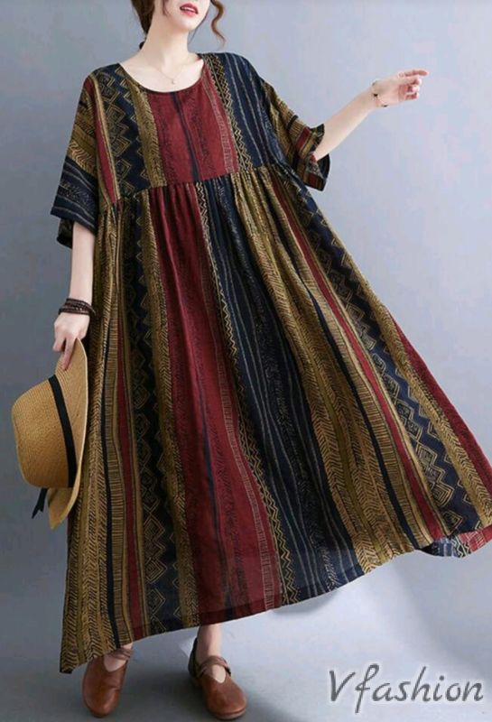 Много актуална, разкроена рокля с принт в бохо стил.
