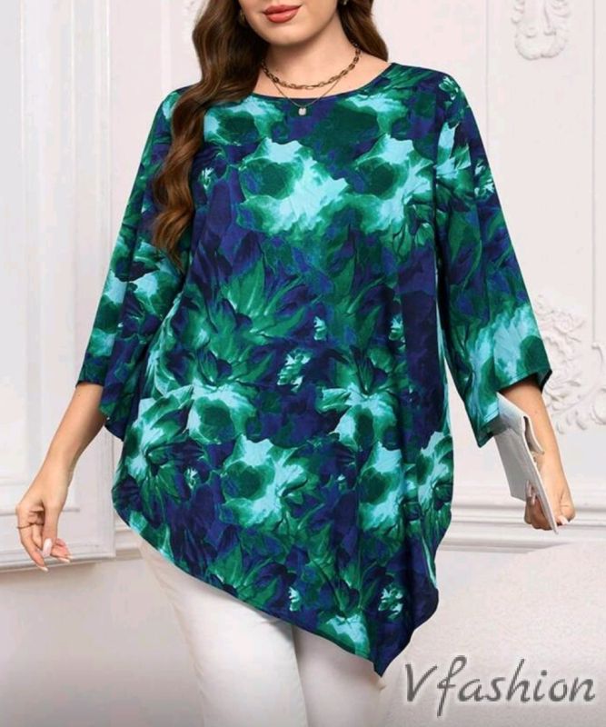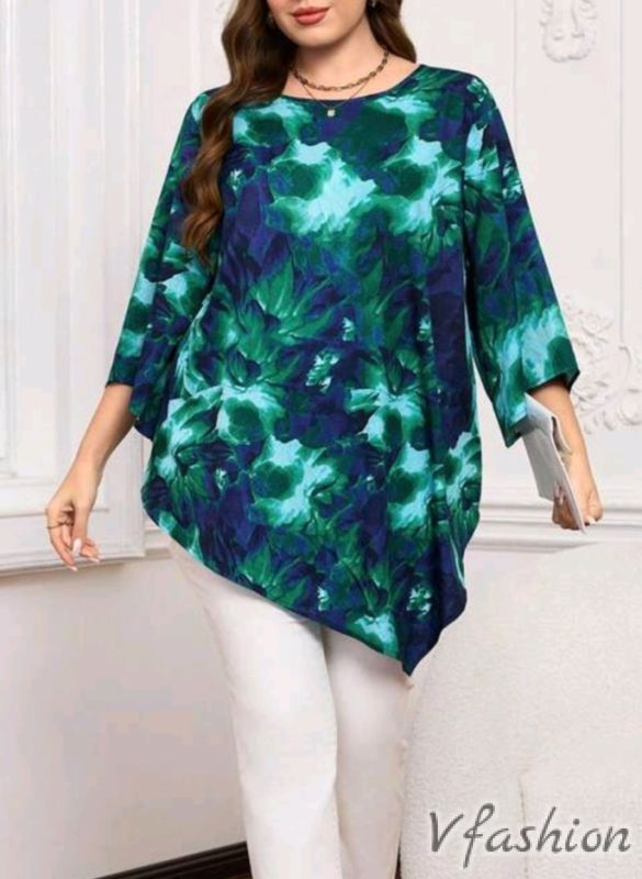 Стилна блуза с асиметрична дължина и флорален принт.