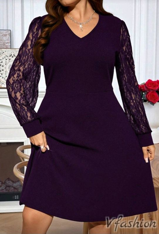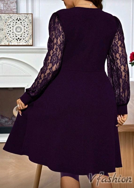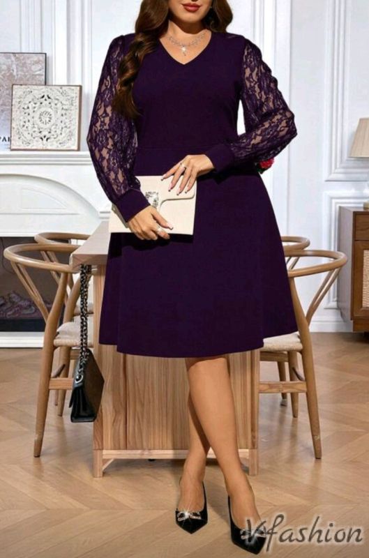 Официална рокля с дантела - лилава