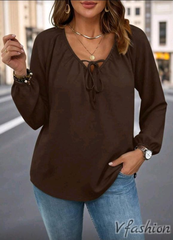 Блуза с връзка - кафява