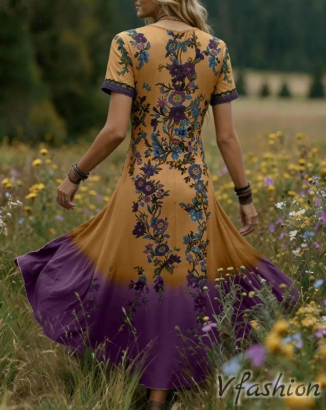 Ежедневна рокля с много красив принт във винтидж стил. Материята е еластична.