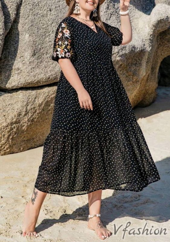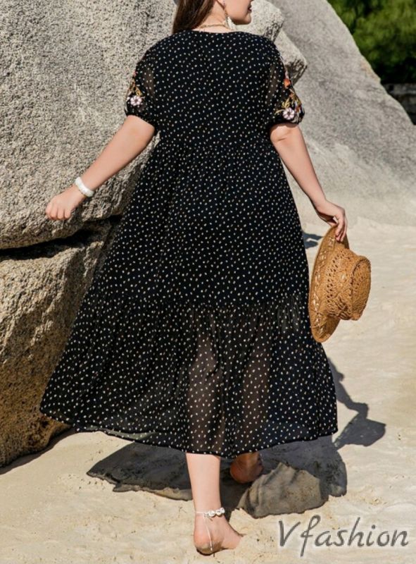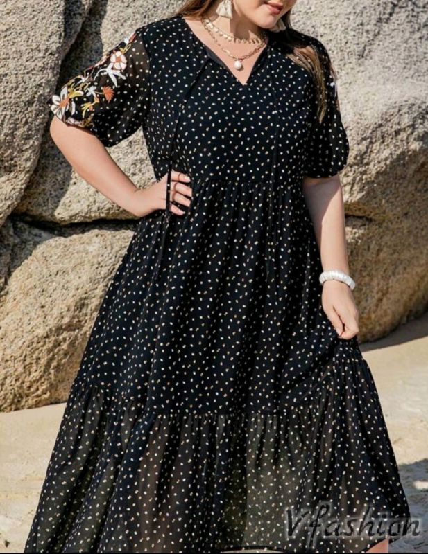 Много красива, ежедневна рокля на точки с бродирани цветя. Роклята има подплата.