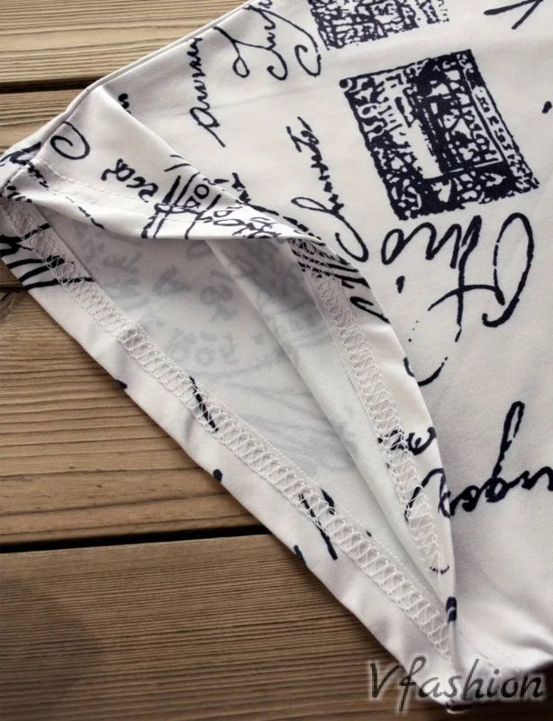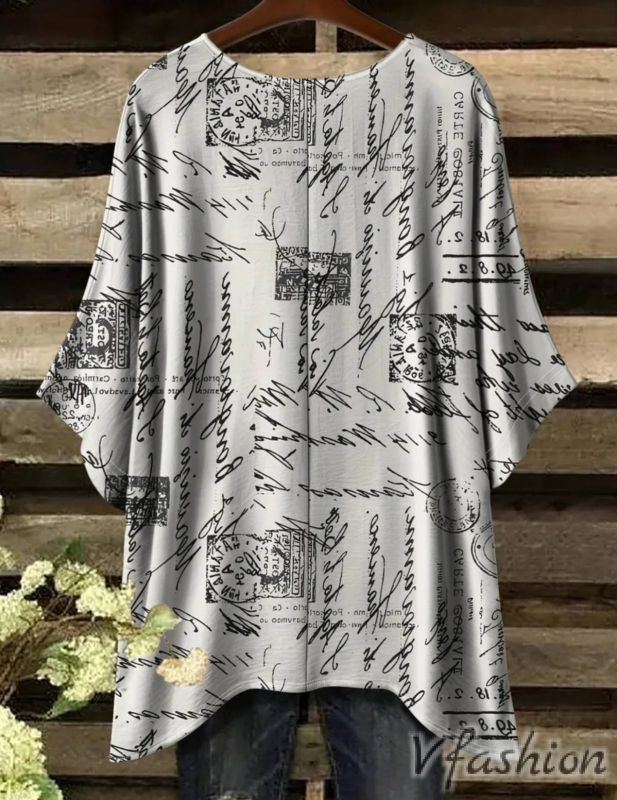 Много удобна и актуална блуза с принт черни надписи на бял фон.