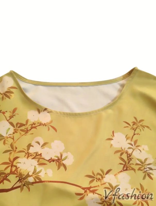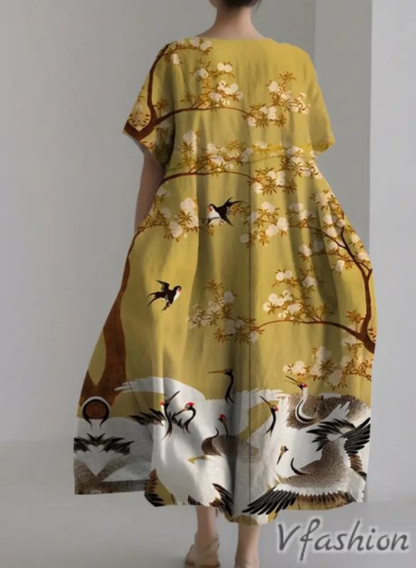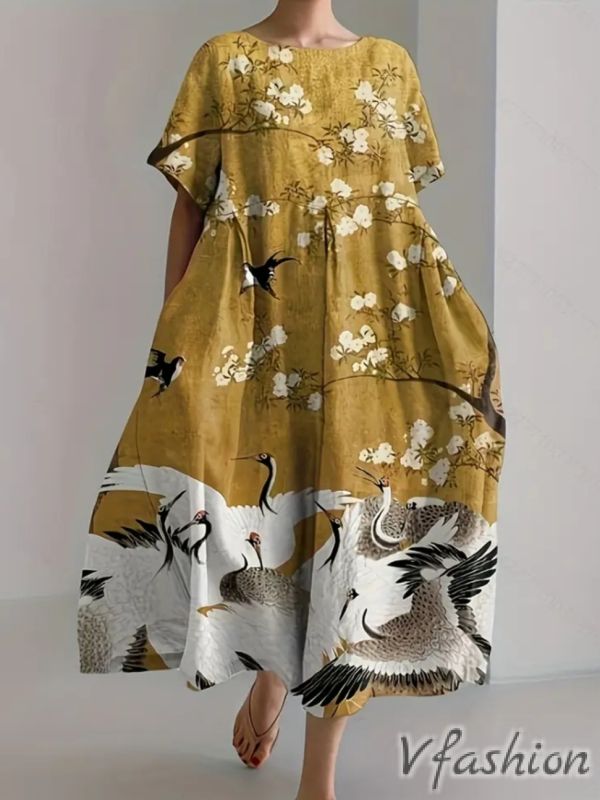 Рокля с принт и джобове - жълта