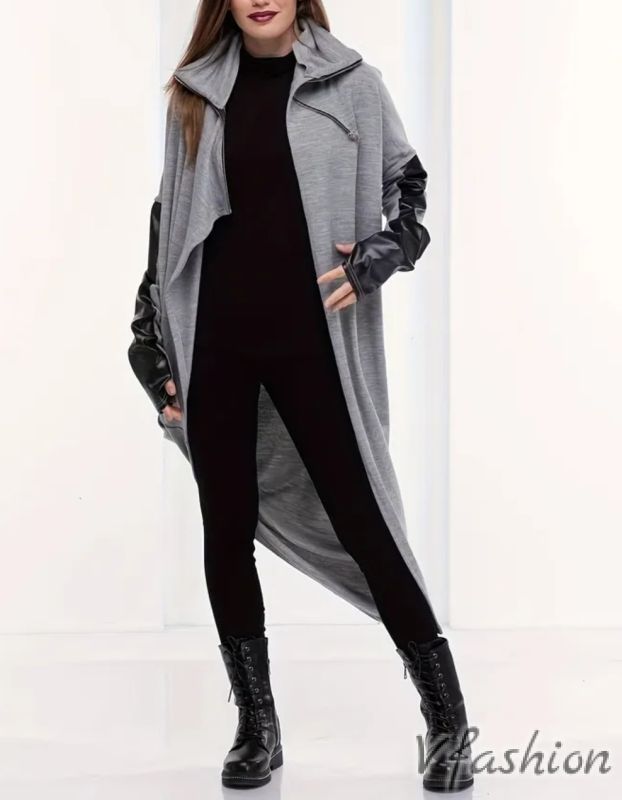 Връхна дреха с кожени детайли
