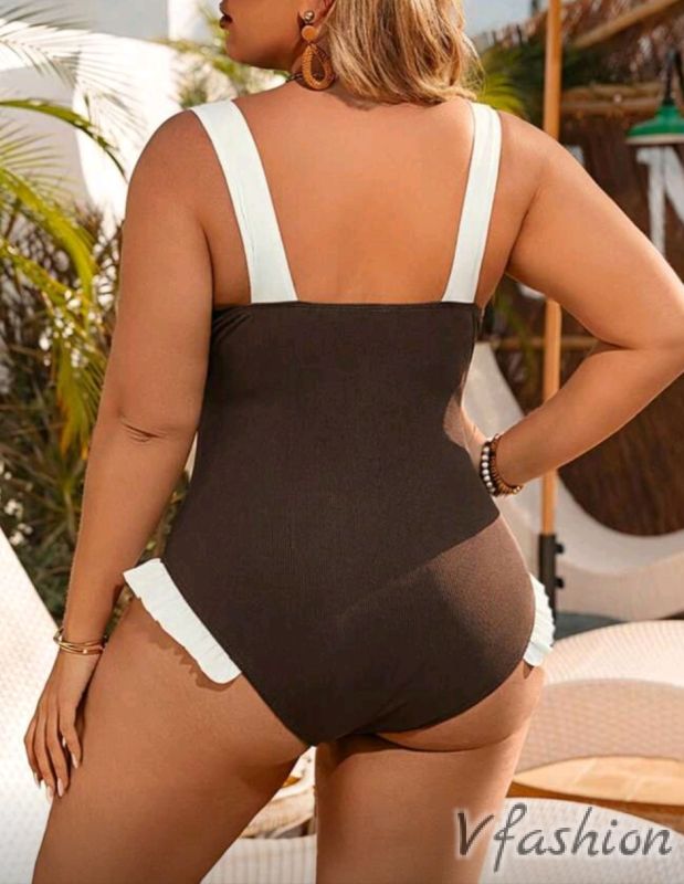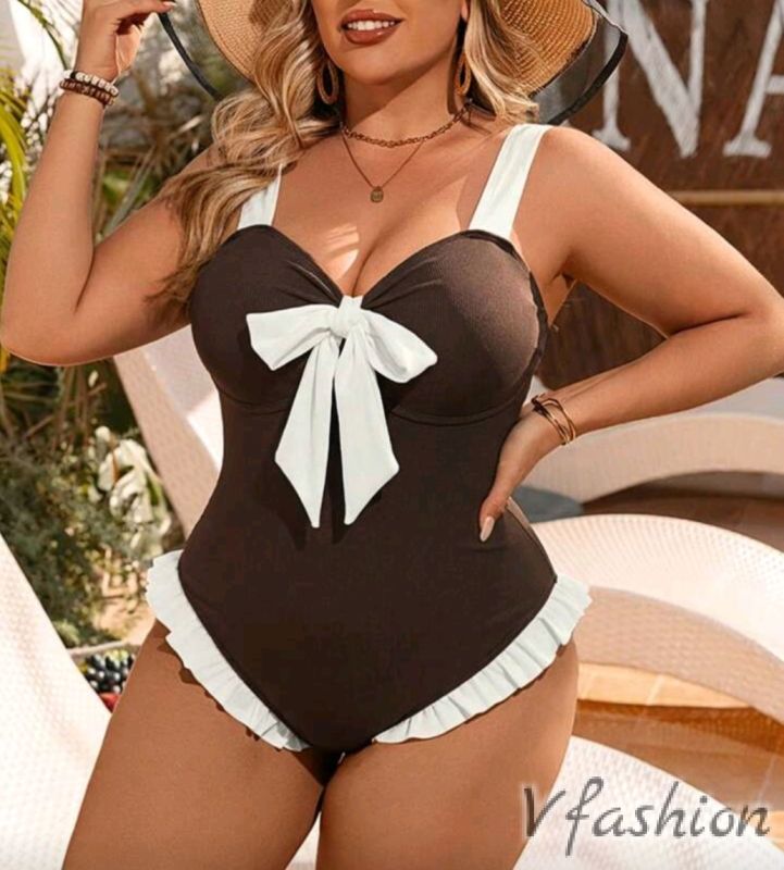 Цял бански с бяла панделка и къдрици. Материята е много качествена и еластична.