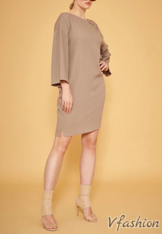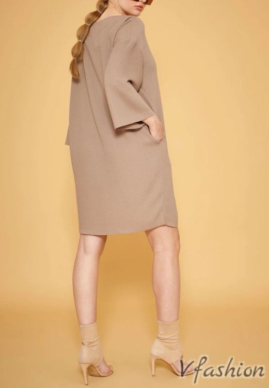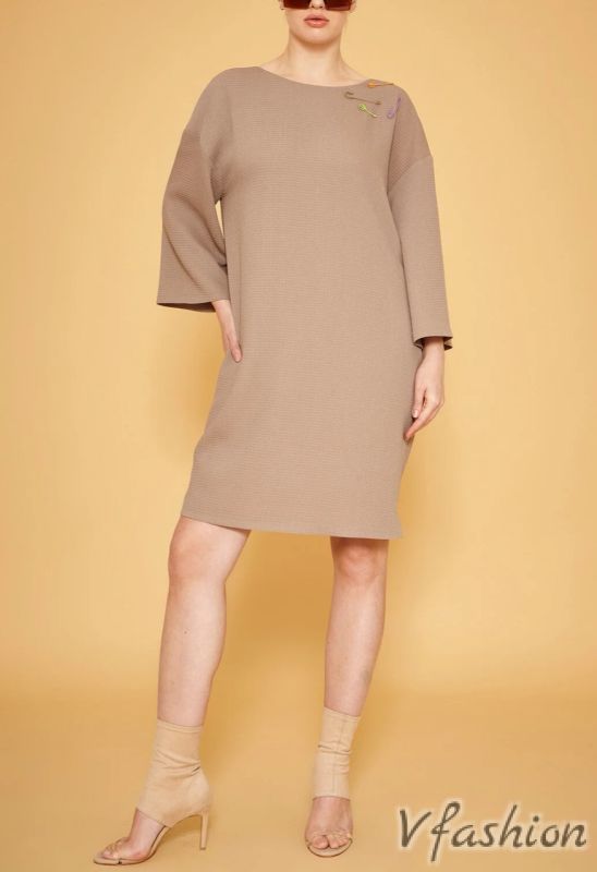 Рокля с джобове и цветни безопасни игли - бежова
