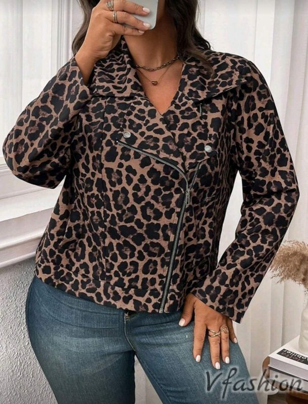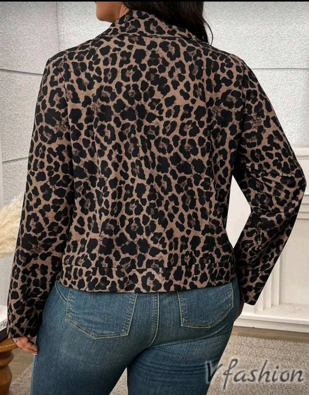 Актуално яке с цип и леопардов принт. Якето е подходящо за преходните сезони. Якето няма хастар.