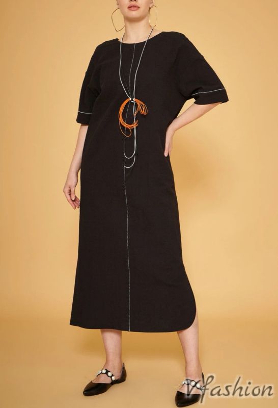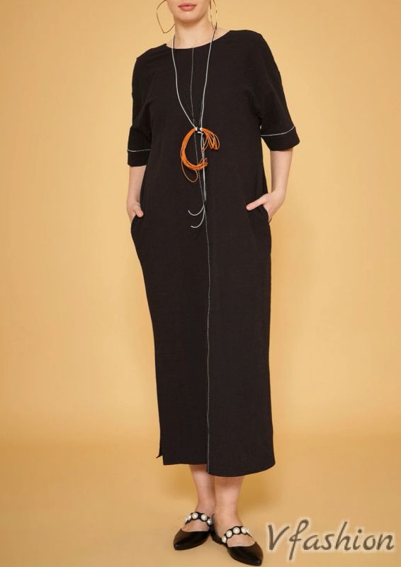 Много актуална, дълга рокля с удобни джобове и гердан.