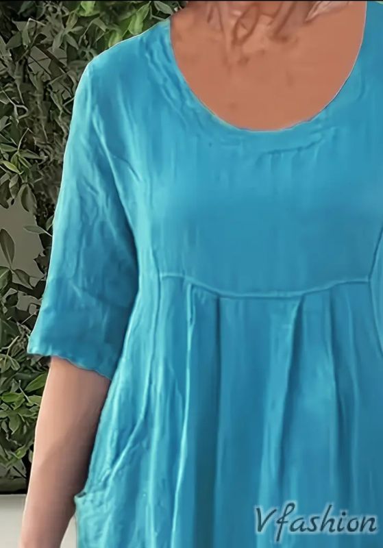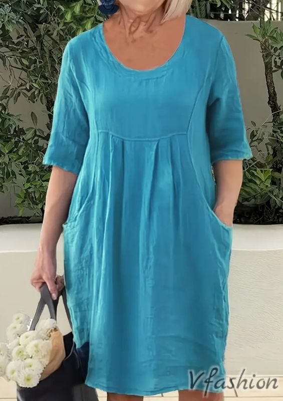 Рокля с джобове - синя
