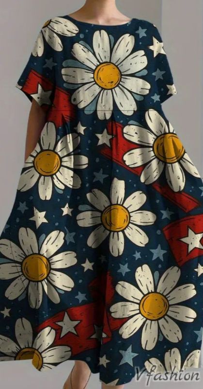 Лятна рокля с принт красиви цветя. Роклята има удобни, странични джобове.