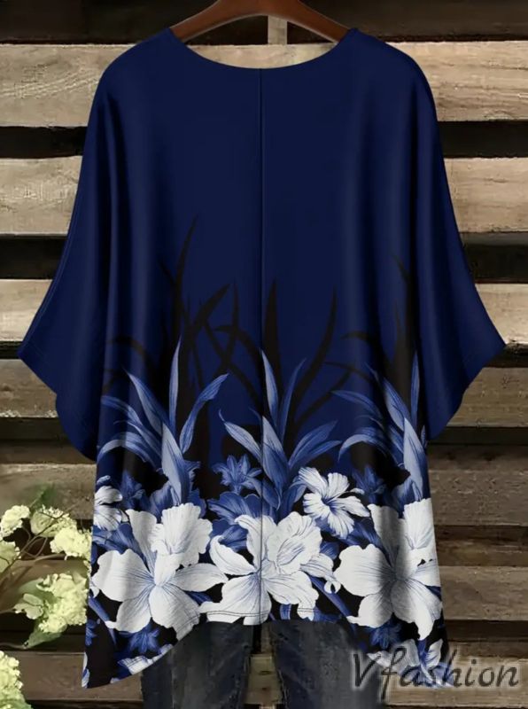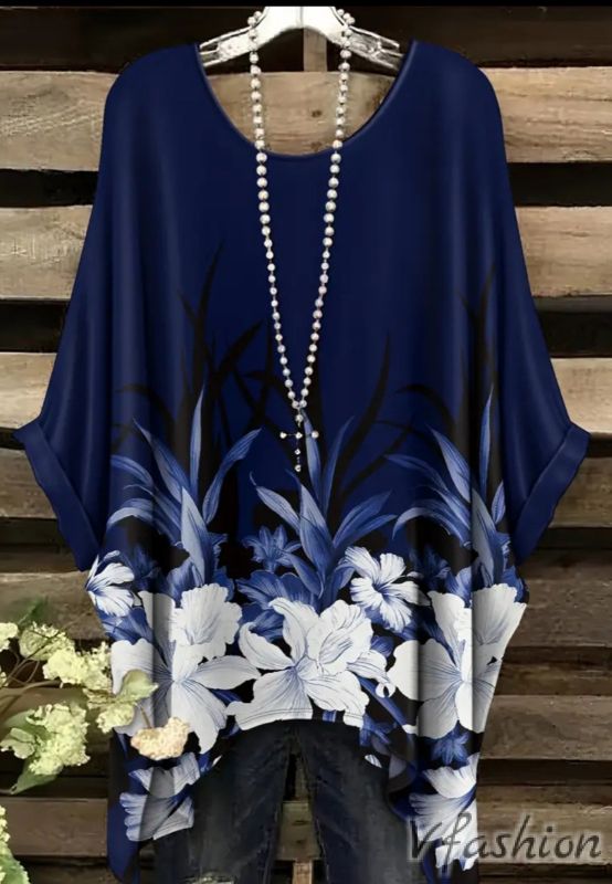 Много удобна и актуална блуза с принт бели цветя на син фон.