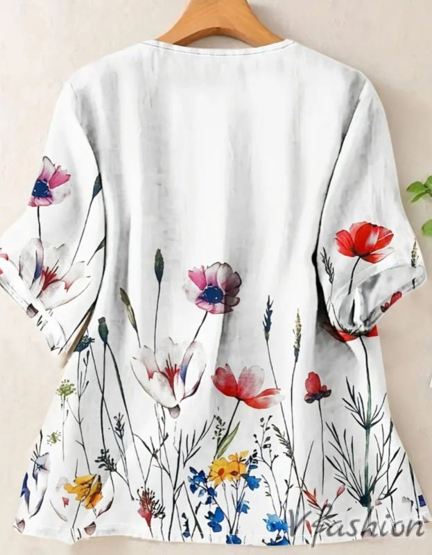 Блуза на цветя - бяла