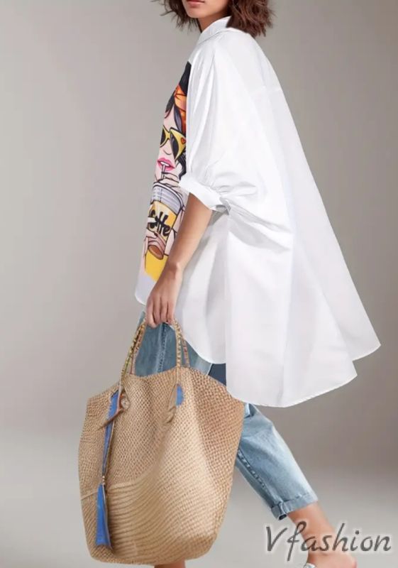 Много актуална риза с красив, цветен принт.