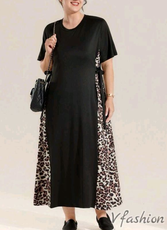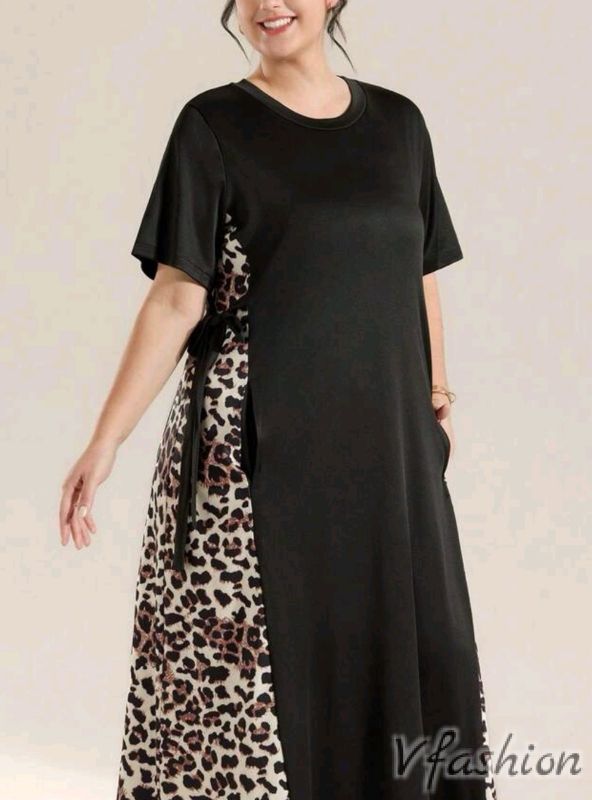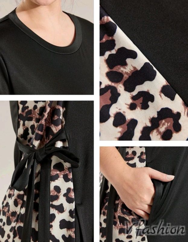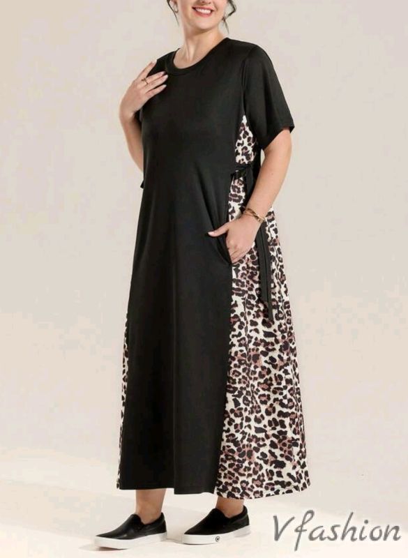 Дълга рокля с леопардов принт за акцент. Роклята има връзки и удобни, странични джобове. Материята е приятна и еластична.