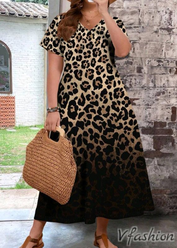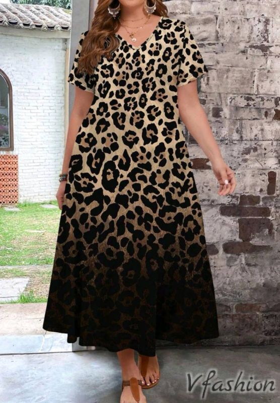 Дълга рокля с актуален, леопардов принт. Материята е приятна и еластична.