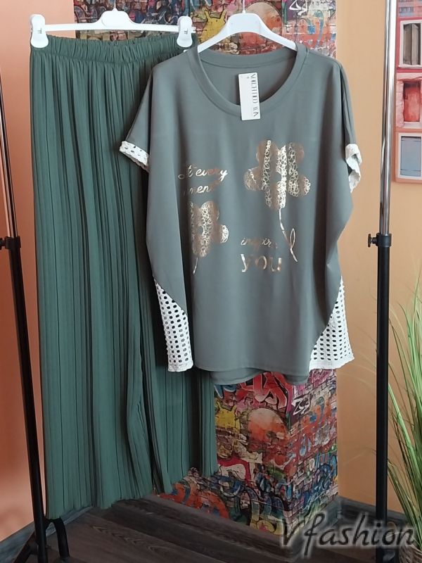 Комплект блуза и панталон солей - зелен
