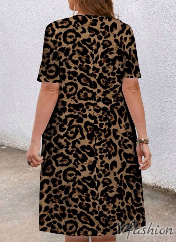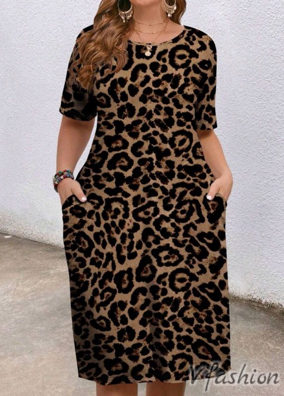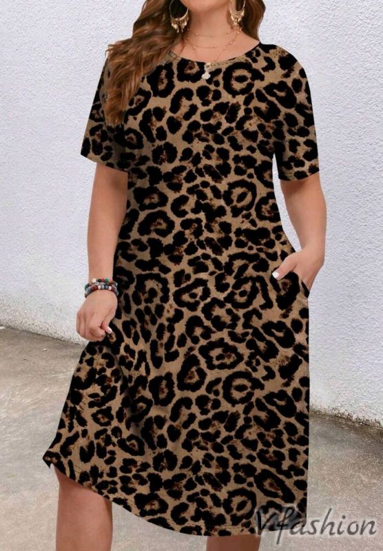 Актуална рокля с леопардов принт. Роклята е от приятна, еластична материя и има удобни, странични джобове.