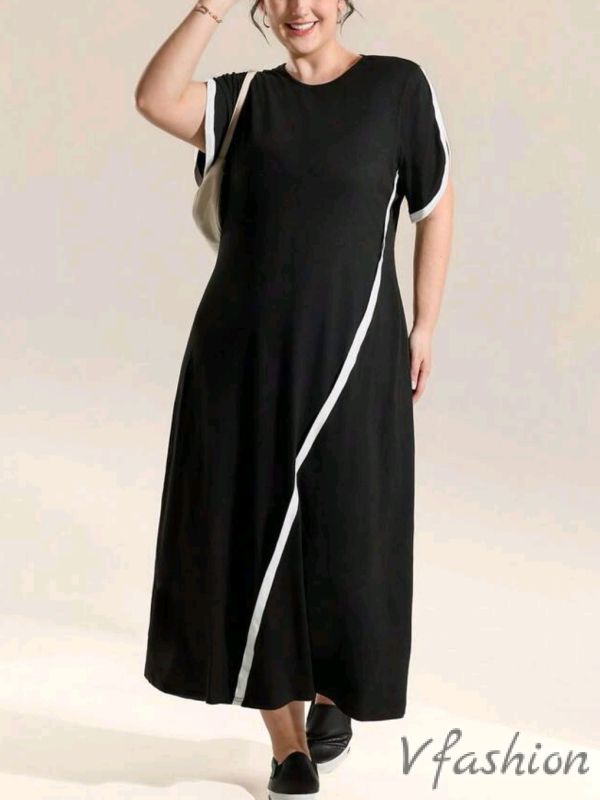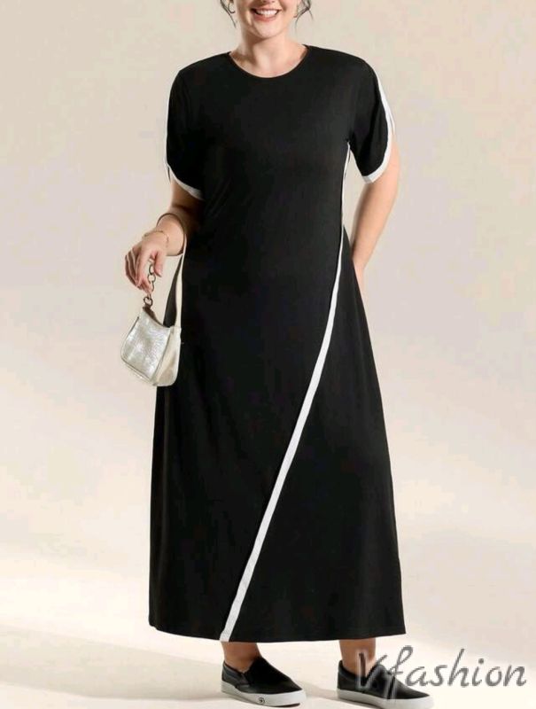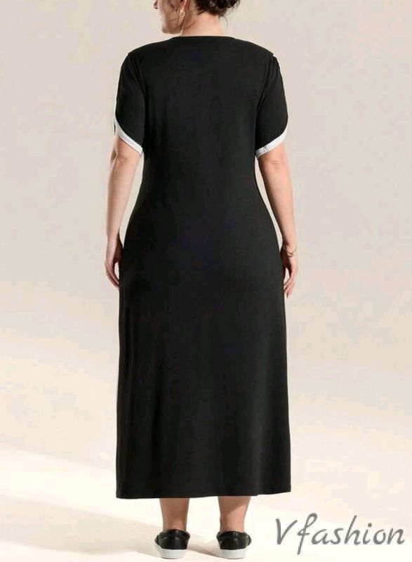 Ежедневна рокля в черно с бели акценти. Материята е еластична.