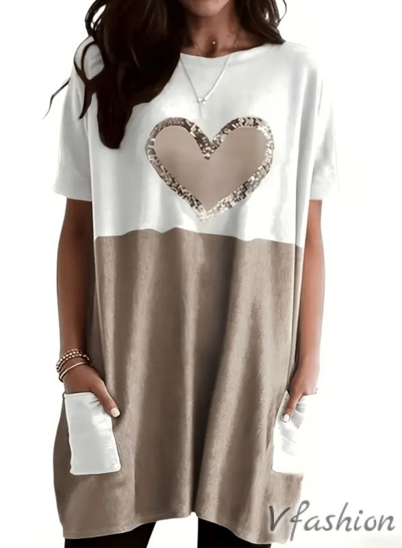 Много удобна и актуална туника с джобове и принт сърце.