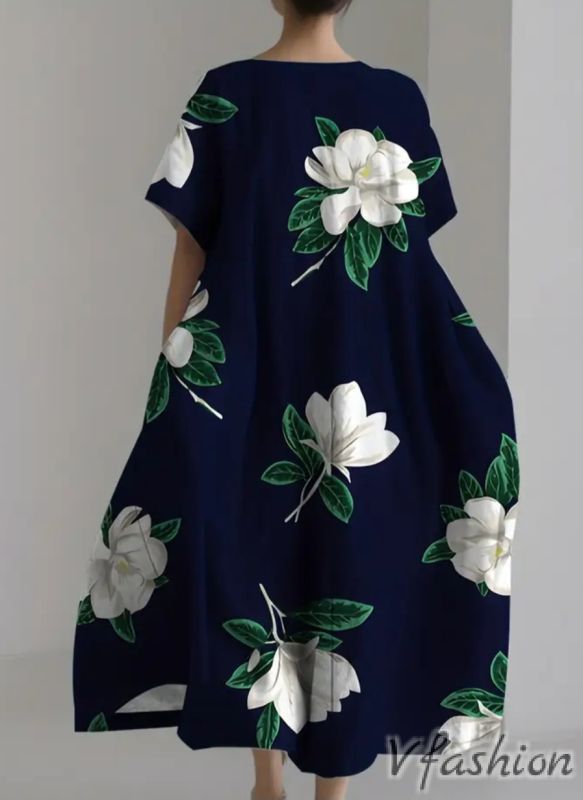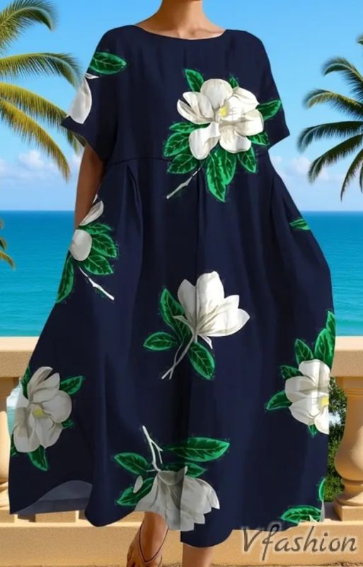 Много актуална, лятна рокля с принт цветя. Роклята има удобни, странични джобове.