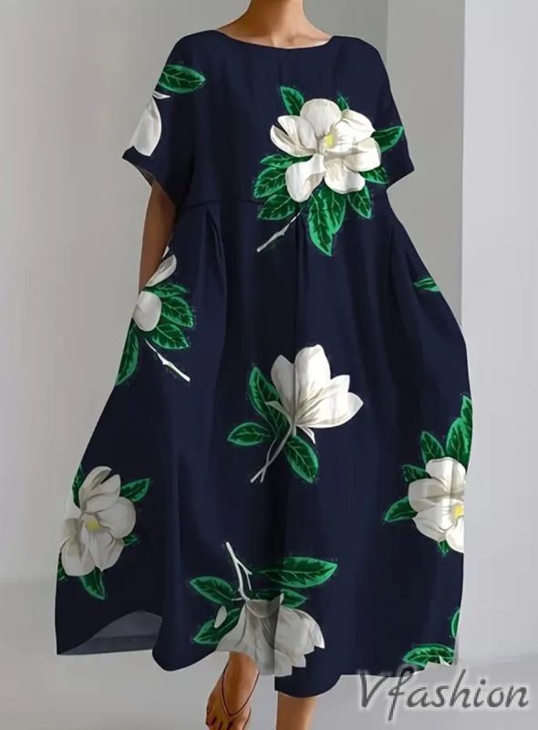Лятна рокля с принт цветя и джобове