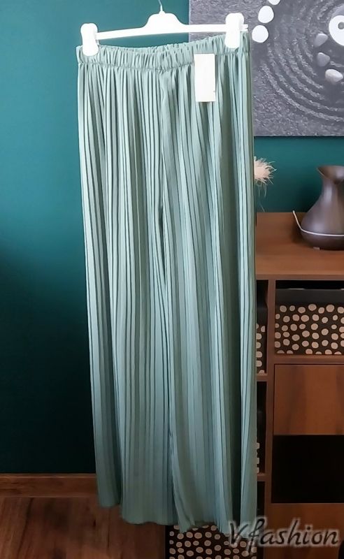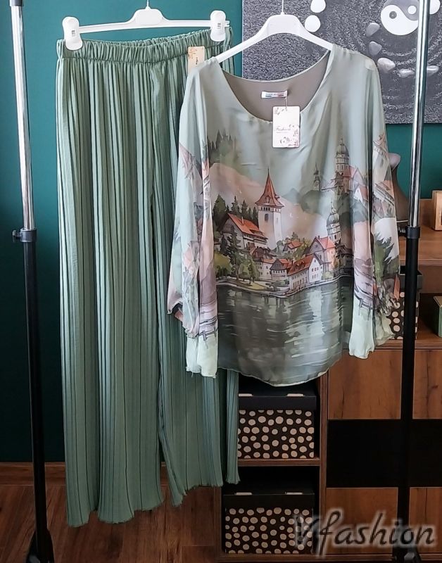 Комплект панталон солей и ефирна блуза - зелен