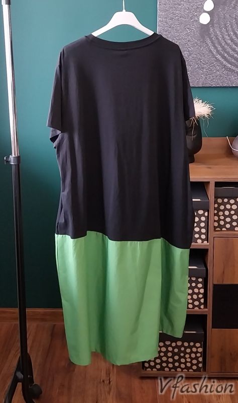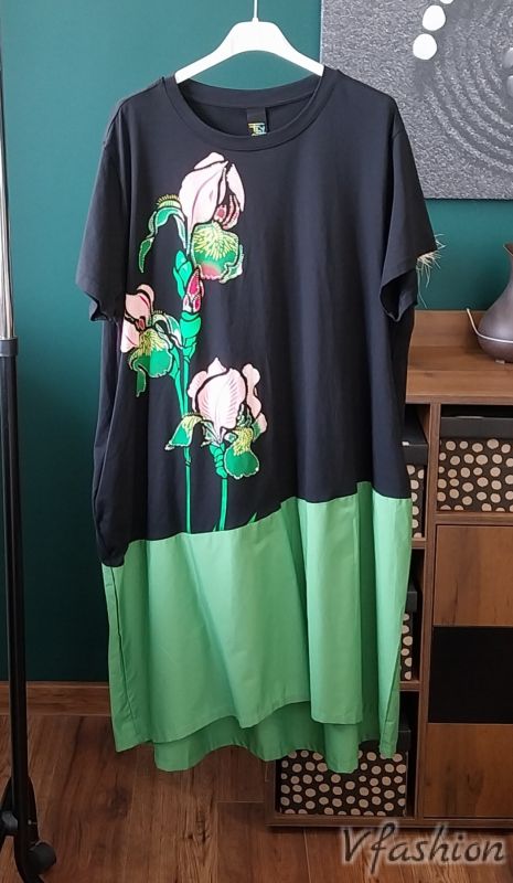 Памучна рокля с принт - черно и зелено