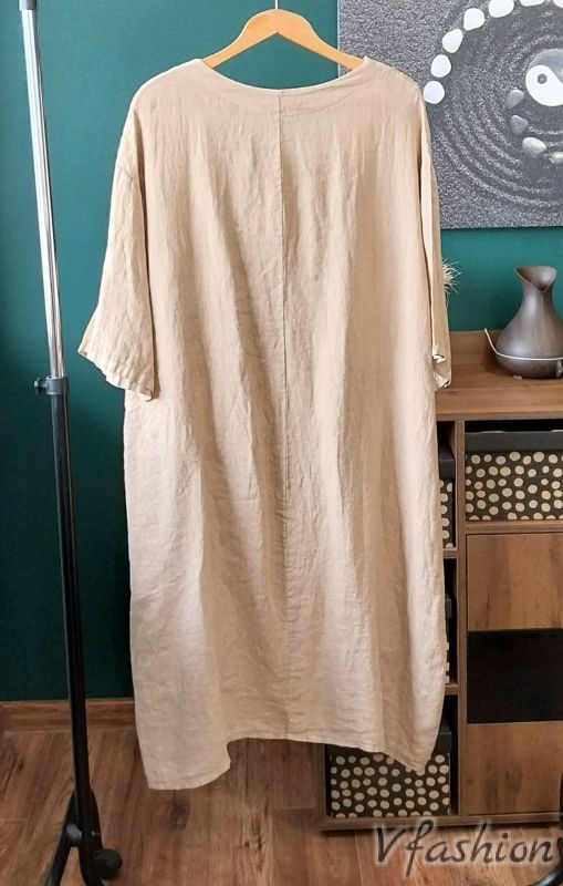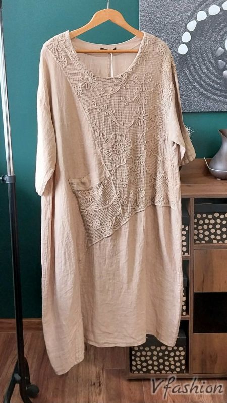 Висококачествена и много стилна, ленена рокля с красиви бродерии.