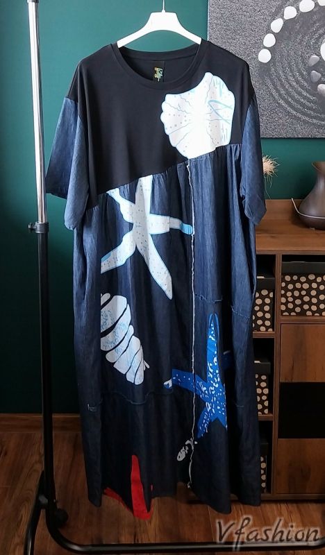 Дънкова рокля с морски акценти