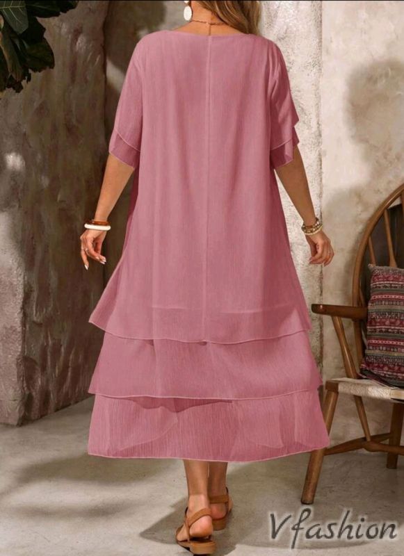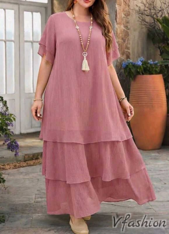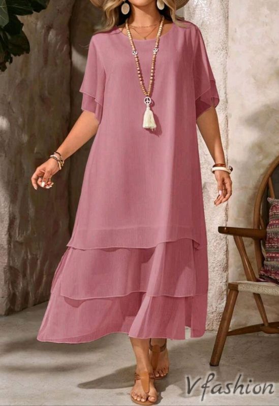 Разкроена, елегантна рокля с волани в нежен цвят.