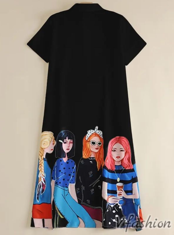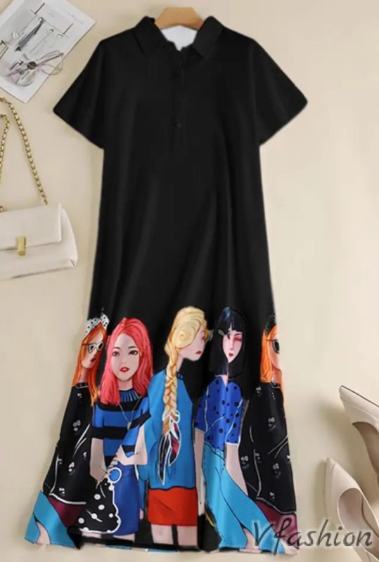 Ежедневна рокля с яка и актуален принт. Роклята има удобни, странични джобове.