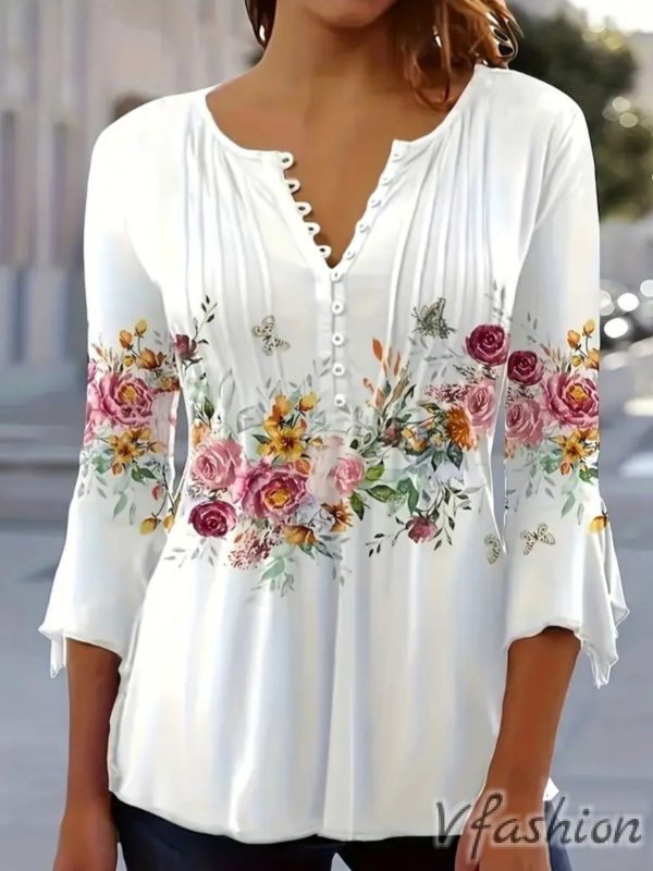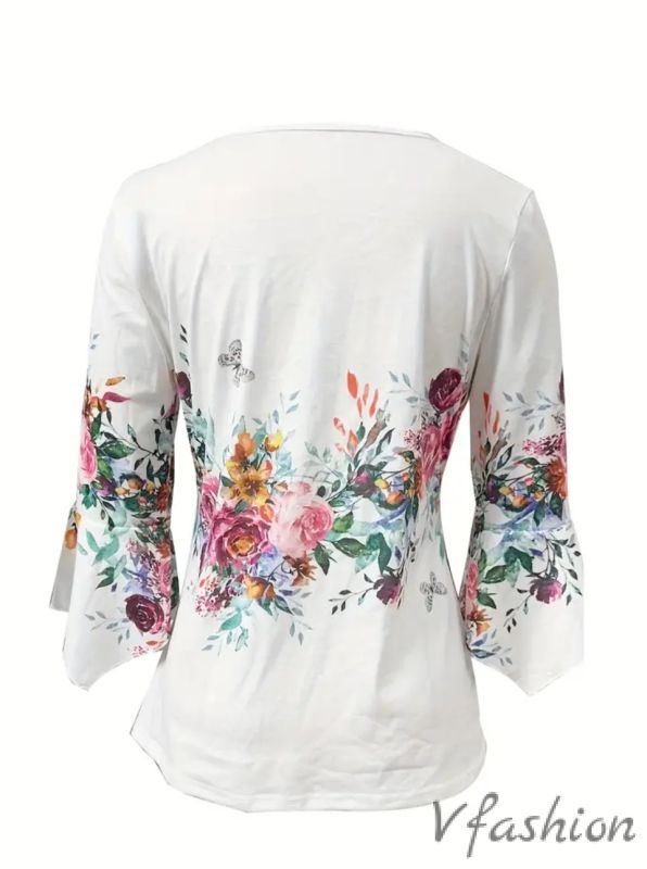 Ежедневна блуза с принт красиви цветя и копчета. Материята е еластична.