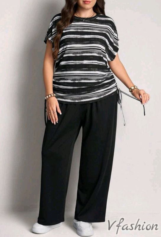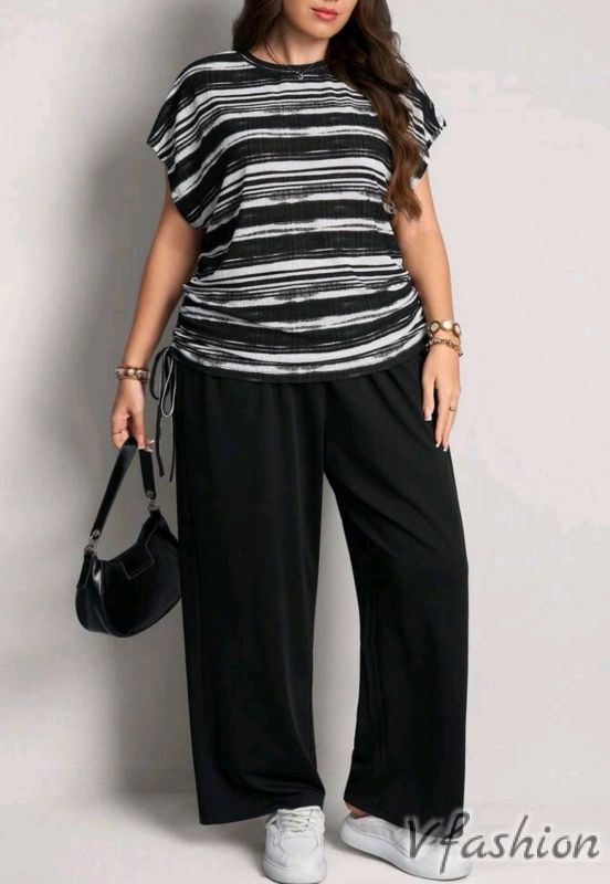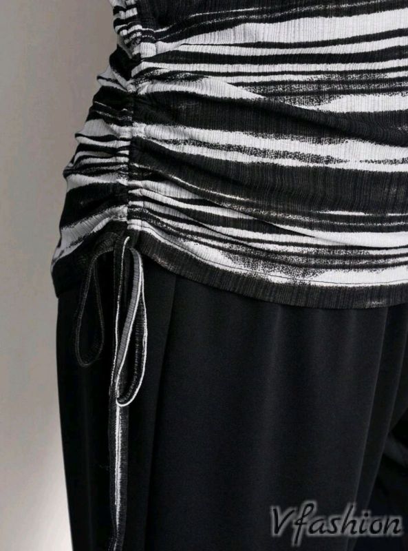 Ежедневен комплект от панталон на ластик и блуза, която може да се набира отстрани с връзка.