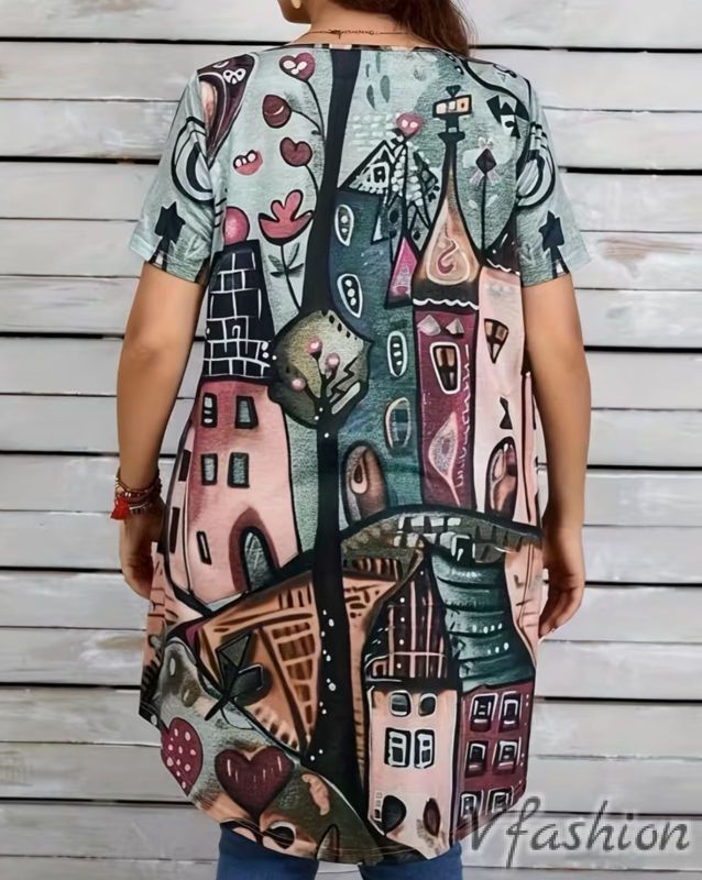 Туника с принт къщи