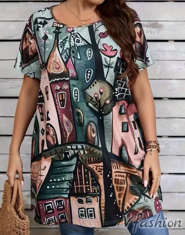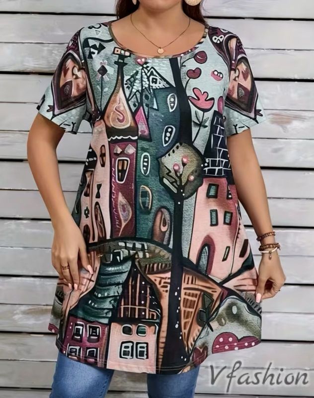 Много удобна и актуална туника с принт къщи.