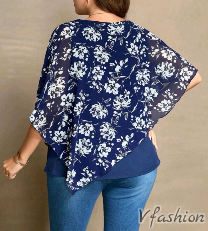 Елегантна блуза от шифонена материя с пришита подплата в синьо.