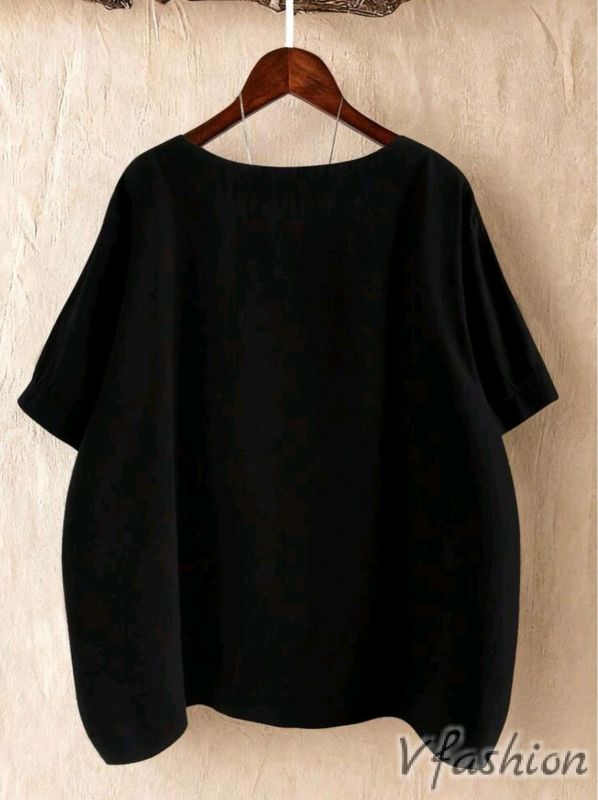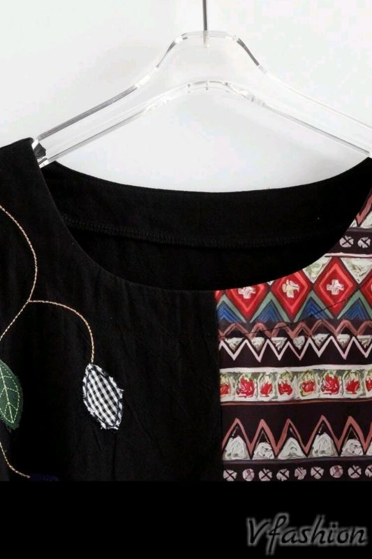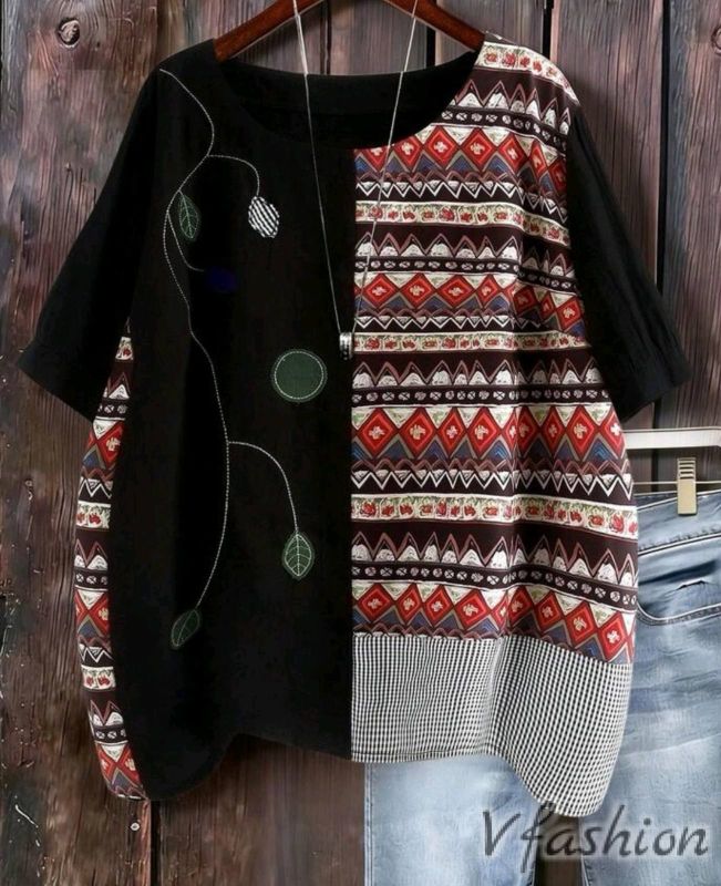 Памучна блуза с пришити листа от плат и принт в бохо стил.