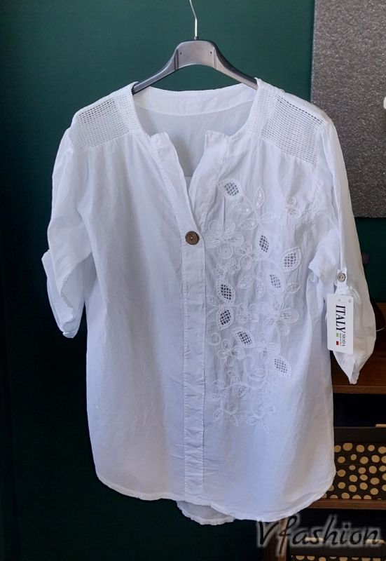Много актуална, памучна блуза с мрежа и рязана бродерия.