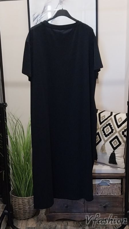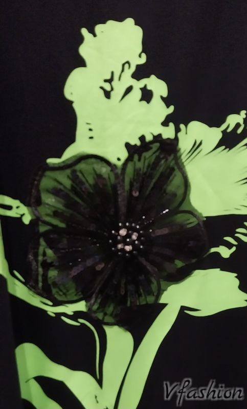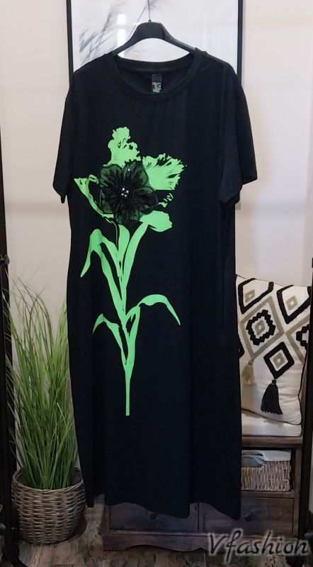 Памучна рокля с цвете от пайети