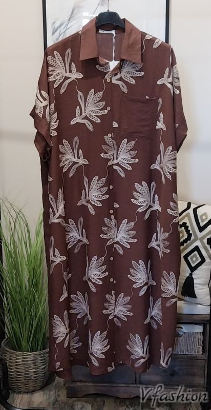 Риза-рокля с бродерии - кафява