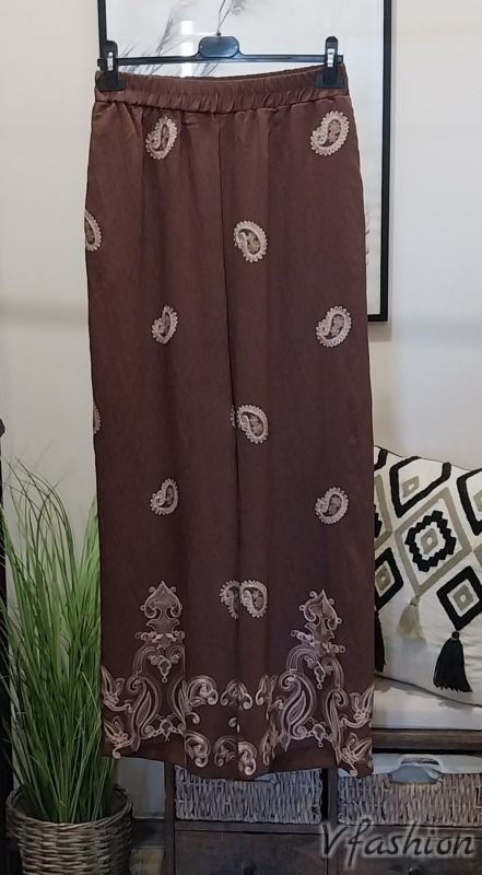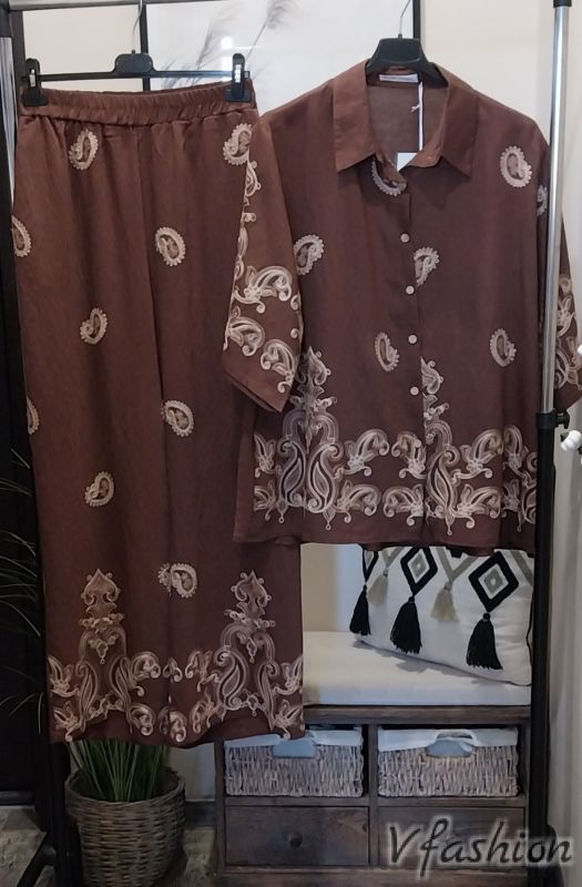 Комплект панталон и риза с бродерии - кафяв