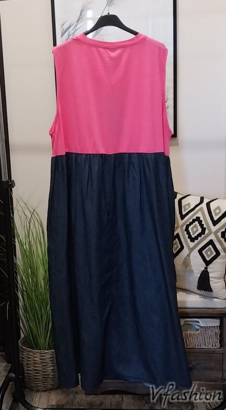 Дънкова рокля с розово