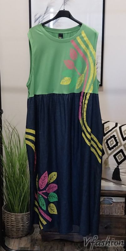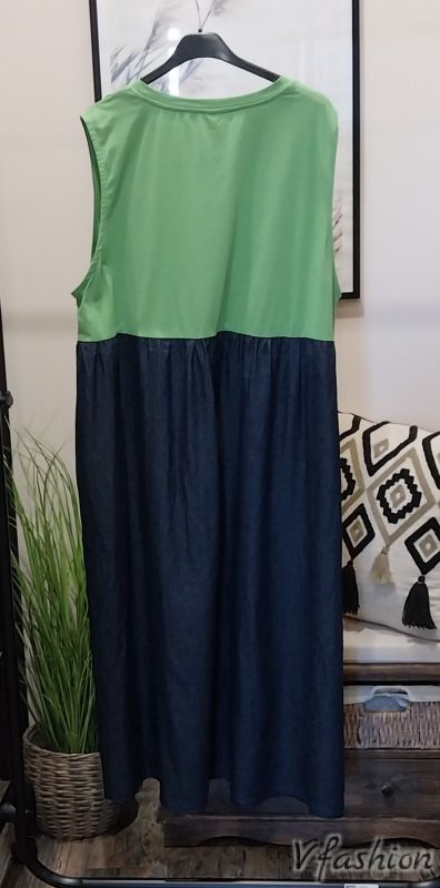 Дънкова рокля със зелено